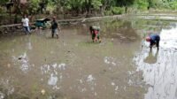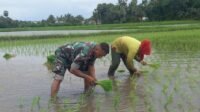 Dukung Ketahanan Pangan, Babinsa Koramil 1426-02/Polsel Bantu Petani Tanam Padi