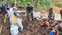 Perbaiki Tanggul Yang Jebol, Babinsa Dan Warga Gotong Royong