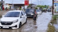 Babinsa Bantu Warga di Jalan Tergenang Moncongloe untuk Atasi Kemacetan