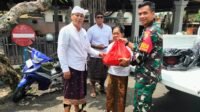 Babinsa Semarapura Kauh Dampingi Pembagian Sembako HUT Ke 31 PT Sinar Bali