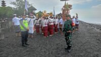 Babinsa Getakan Bersama Bhabinkamtibmas Dan Pecalang Gelar Pengamanan Upacara Melasti Paibon Cemeng