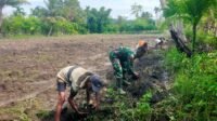 Babinsa Wulla Waejelu Bantu Warga Membuat Pematang Sawah di Desa Lumbu Manggit