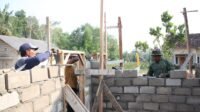 Pekerjaan Dilanjutkan, Satgas TMMD Pasang Batako Dinding Rumah dengan Semangat