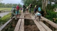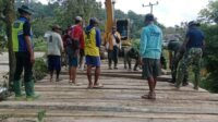 TNI, Warga dan Polri Kompak Pasang Lantai Jembatan di Awua Jaya dalam Program TMMD 125