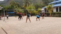 Jaga Kebugaran Dan Kekompakan, Anggota Satgas TMMD 125 Kodim 1417/Kendari Bermain Bola Voli Bersama Warga