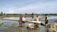 Babinsa Dampingi Petani Menggunakan Alat Mesin Tanam Padi