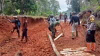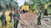 Babinsa Koramil 408-04/KS Bersama Warga Gotong Royong Perbaiki Jalan Desa