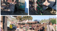 Koramil 1608-04/Woha dan Warga Gelar Gotong Royong Bersihkan Puing Sisah Kebakaran.