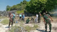 Sinergi Koramil 1608-03/Sape dan Masyarakat Bajo Pulau Bersihkan Pantai