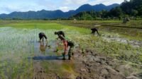 Dukung Program Swasembada Pangan, Babinsa Koramil 01/Jaya Bantu Petani Tanam Padi