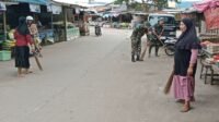 Semangat Gotong Royong Babinsa Koramil 1425-01/Binamu Bersama Masyarakat Bersihkan Lingkungan Pasar