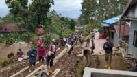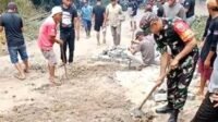 Babinsa Koramil 1409-04/Tinggimoncong Bersama Warga Karya Bakti Pengecoran Jalan