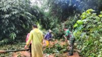 Babinsa Koramil 408-02/KU Bersama Warga Bersihkan Material Tanah Longsor
