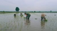 Babinsa Koramil 426-05 PA, Terjun Langsung Ke Sawah, Bantu Petani Proses Penanaman Padi