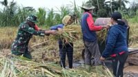 Dukung Ketahanan Pangan Nasional, Babinsa dan PPL Kelurahan Cempaga Turut Bantu Panen Padi di Subak Mandi Bukit