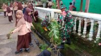 Koramil 1426-01/Polut Ajak Siswa Siswi SD Kerja Bakti Bersihkan Selokan Dan Bahu Jalan
