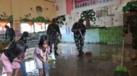 Pastikan Belajar Mengajar Tetap Berjalan, Personel Koramil 1608-07/Monta Kerja Bakti Bersihkan Sekolah