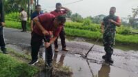 Babinsa Bersama Pemdes Apuan Gotong Royong Perbaiki Jalan Rusak
