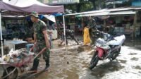 Babinsa Maros Bersama Masyarakat Bersihkan Sampah Pasar Tradisional