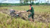 Musim Penghujan Tiba Babinsa Turun Sawah Bantu Petani Garap Lahan Persiapan Tanam.