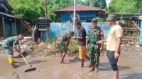 Kodim 1614/Dompu Melaksanakan Karya Bakti Membersihkan Lumpur Di Rumah Warga Akibat Banjir Bandang