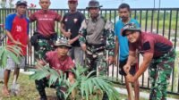 Ciptakan Lingkungan Gereja Yang Asri, Babinsa Bersama Satgas Pamtas dan Warga Tanam Pohon