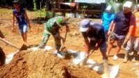 PENUH SEMANGAT, BABINSA KORAMIL 1705-03/KWATISORE TURUT MEMBANTU WARGA DALAM PENGECORAN JEMBATAN