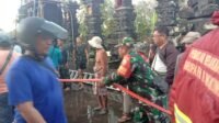 Gerak Cepat, Babinsa Getakan Bersinergi Padamkan Kebakaran Di Pura Penataran Pande Meranggi
