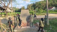 Satgas TMMD 125 Rapiakan Tugu Prasasti di Pertigaan Desa Awua Jaya