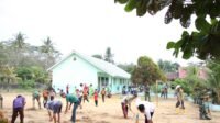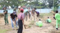Satgas TMMD Kodim 0426/Tulang Bawang Bersama Warga Bersihkan Lingkungan Sekolah di Moris Jaya