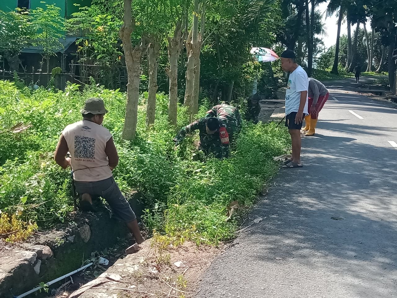 Babinsa Sertu Azis. M menjelaskan, kegiatan bersih-bersih saluran air ini agar aliran air lancar dan tidak menimbulkan banjir yang akan merugikan warga.