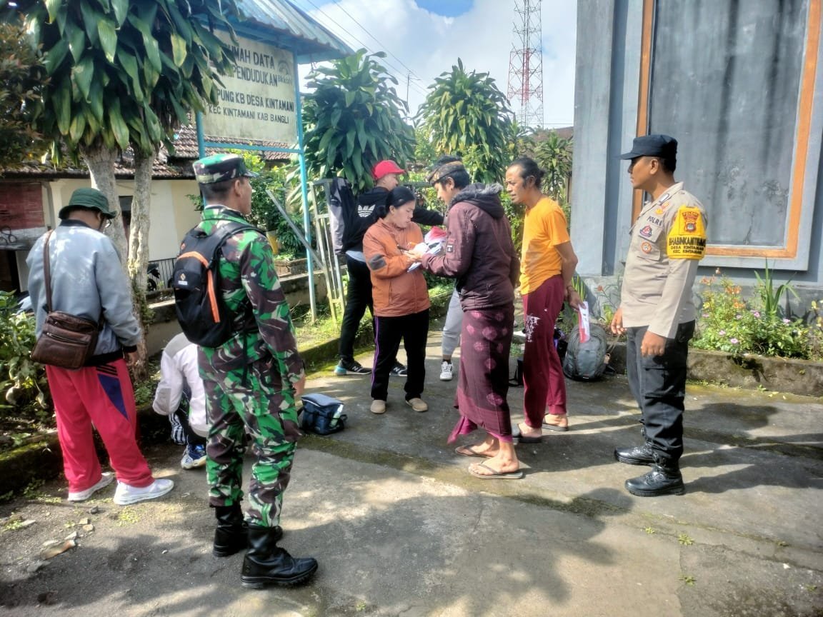 Bangli – Babinsa Desa Kintamani, Serka I Wayan Suastika bersama Babinkamtibmas Bripka Gusti Subagiarta, melaksanakan pengawasan dan pendampingan vaksinasi rabies terhadap anjing dan kucing di Desa Kintamani, Kecamatan Kintamani, Kabupaten Bangli, Kamis (22/05/25).