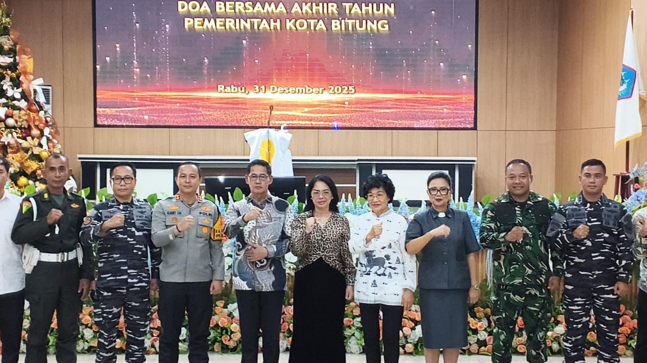 BITUNG – Menyambut pergantian tahun, Forum Koordinasi Pimpinan Daerah (Forkopimda) Kota Bitung menggelar Ibadah Doa Bersama Akhir Tahun Pemerintah Kota Bitung, yang berlangsung di Gedung BPU S. H. Sarundajang, Jl. Sam Ratulangi No. 45, Kel. Bitung Barat Satu, Kec. Maesa Kota Bitung, Rabu (31/12/2025).