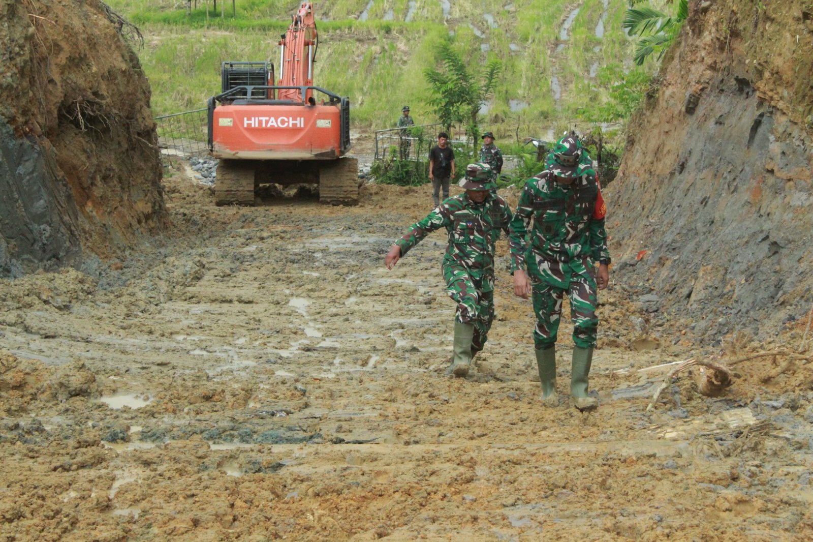 Pembuatan badan jalan yaitu salah satu sasaran fisik utama dalam program TMMD ke 127 guna membuka keterisolasian wilayah dan memperlancar mobilitas warga.