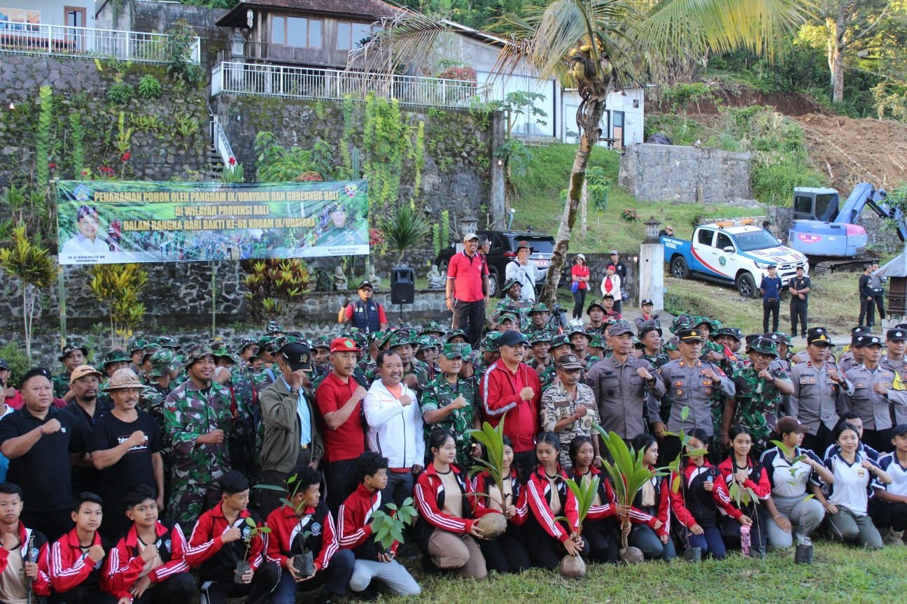 Tabanan — Dalam rangka memperingati Hari Bhakti ke-68 Kodam IX/Udayana, Kodim 1619/Tabanan menggelar kegiatan penanaman pohon serentak yang dilaksanakan di seluruh wilayah Bali. Kegiatan ini merupakan bentuk kepedulian TNI terhadap pelestarian lingkungan serta dukungan terhadap program penghijauan nasional. Jumat (30/5/2025)