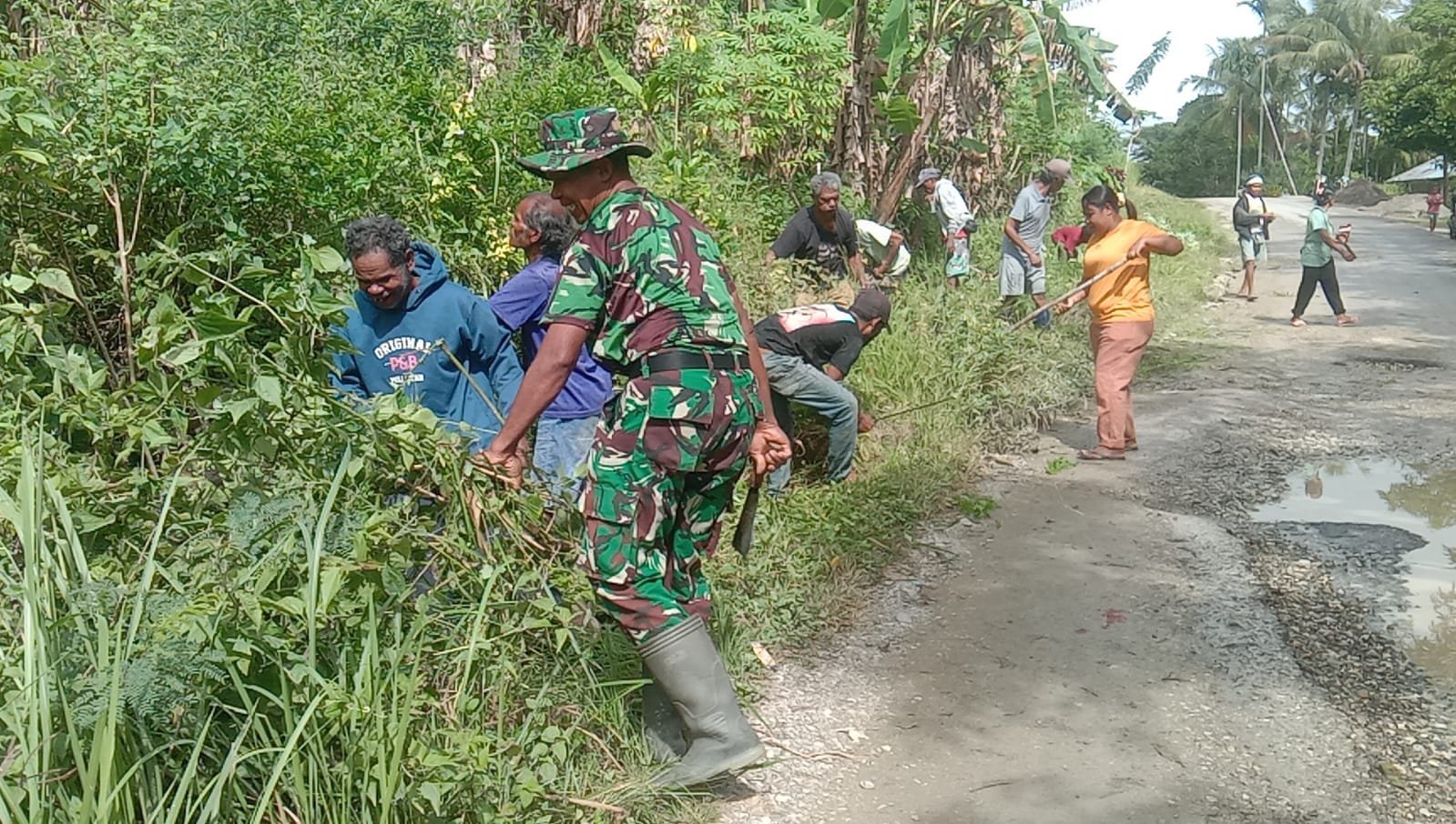 Saat di Konfirmasi Di Sela-Sela Kegiatan Serka Yan Tkesnay Mengatakan ” Mulai pukul 08.00 WIT, anggota Koramil 02 Abanteng bersama warga binaan membersihkan kotoran serta rumput yang tumbuh liar di sepanjang jalan tersebut. “ Kerja bakti yang kami lakukan mulai dari jam 08.00 Pagi tadi adalah membersihkan jalan dari sampah yang berserakan maupun rumput yang tumbuh liar di kanan/kiri jalan, “ kata Serka Yan Tkesnay