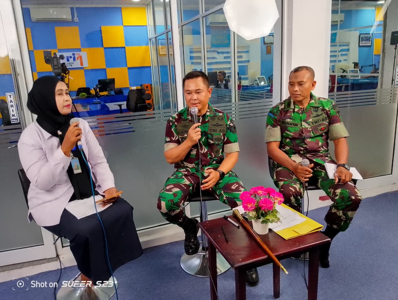 Aceh Barat – Sebagai upaya meningkatkan animo para pemuda Aceh Barat agar mendaftar menjadi anggota TNI AD, Dandim 0105/Abar Letkol Inf S. Kembaren, S.E., M.I.P., didampingi Pasi Personalia Kapten Inf Suna’im melaksanakan sosialisasi atau kampanye kreatif melalui frekuensi udara LPP RRI Meulaboh yang beralamatkan di Jalan Abu Madinah No. 1 Desa Pasi Jambu Kecamatan Kawat XVI, Selasa (30/9/2025)
