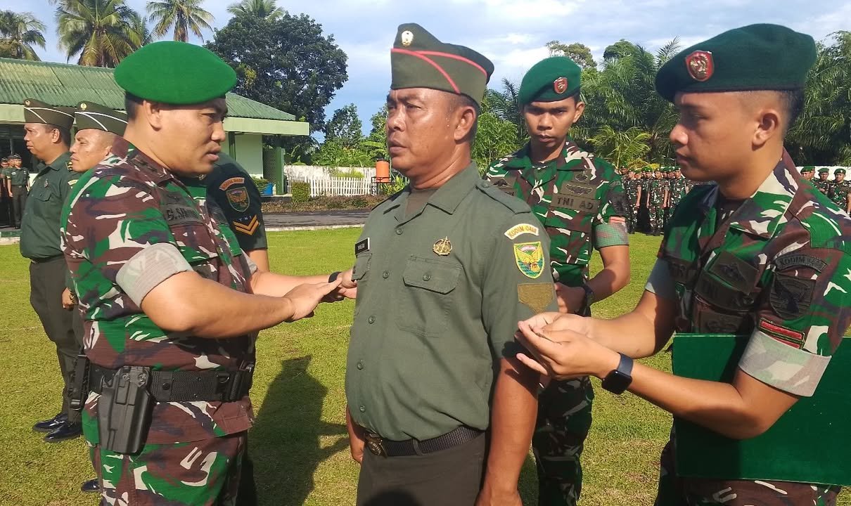 Manna- Dandim 0408/BSK Dandim Letnan Kolonel Czi Bambang Santoso, S.H., M.SDS memimpin secara langsung upacara pelantikan kenaikan pangkat Bintara dan Tamtama Periode 1 April 2025 di Lapangan Makodim 0408/BSK Jalan Veteran Kelurahan Padang Kapuk Kabupaten Bengkulu Selatan , Selasa (8/4/25).