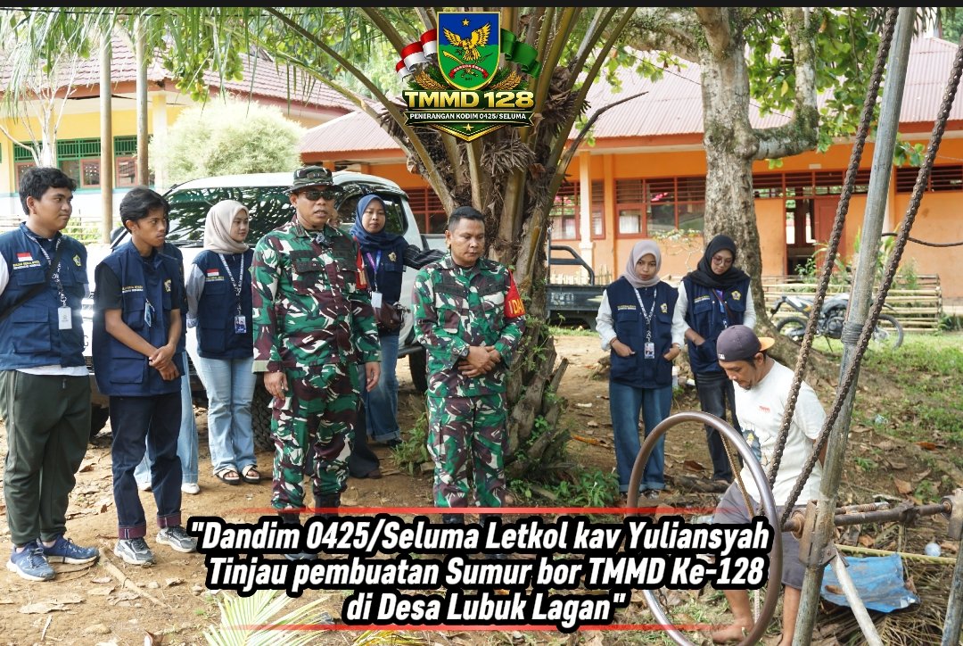 Seluma – Komandan Kodim 0425/Seluma, Letkol Kav Yuliansyah, melaksanakan pengawasan langsung terhadap pembangunan sumur bor yang menjadi bagian dari program TNI Manunggal Membangun Desa (TMMD) Ke-128 di Desa Lubuk Lagan, Kecamatan Talo Kecil.