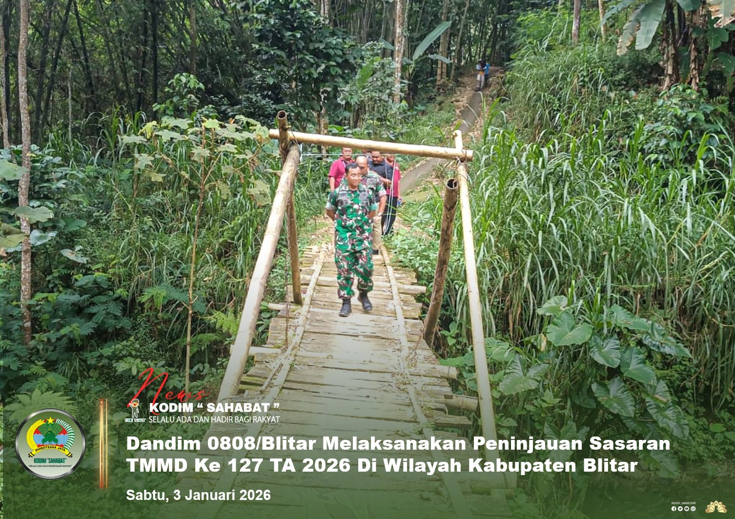 Program TMMD merupakan wujud nyata sinergi TNI dengan pemerintah daerah dan masyarakat dalam percepatan pembangunan desa. Diharapkan melalui TMMD ke-127 ini dapat meningkatkan kesejahteraan masyarakat serta memperkokoh kemanunggalan TNI dan rakyat di wilayah Kabupaten Blitar, ucap Dandim 0808/Blitar (Dim0808).