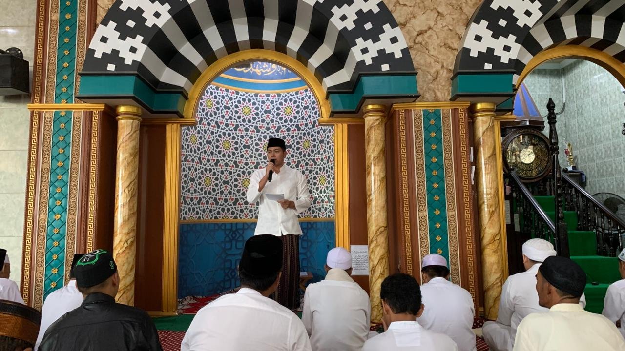 Dandim 0909/Ktm bacakan Sambutan Bupati Kutai Timur kepada Jama’ah sholat Ied di Mesjid Nurul Iman Al Qubaiya Bukit pelangi Sangatta
