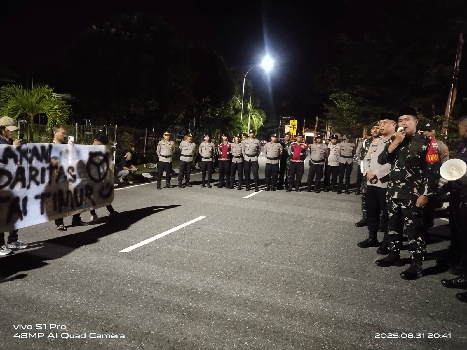 Hal ini disampaikan Dandim 0909/Kutai Timur saat memberikan sambutan kepada peserta aksi solidaritas yang tergabung dalam Gerakan Solidaritas Kutai Timur. Kegiatan tersebut dilaksanakan di depan Markas Komando (Mako) Polres Kutai Timur, Jalan Bhayangkara, Desa Sangatta Utara, pada hari Minggu, (31/08/2025).