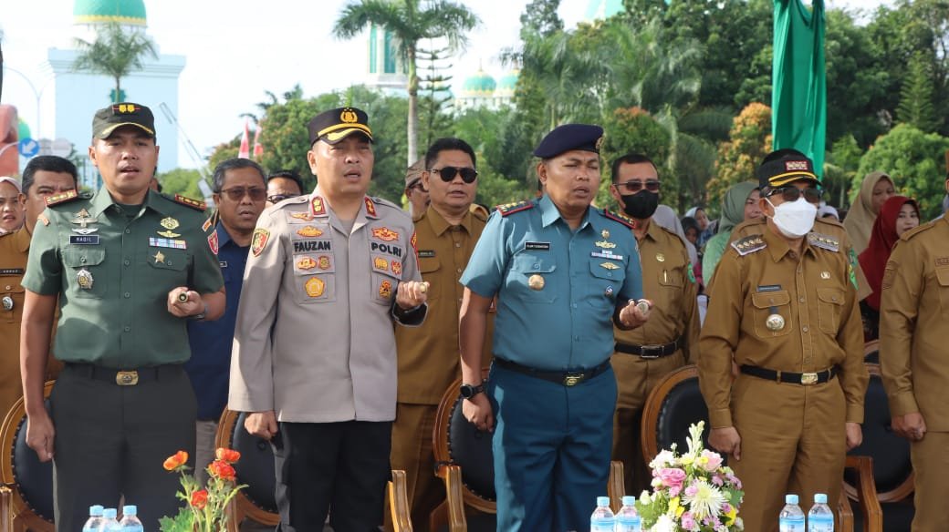 Kegiatan yang dipusatkan di Lapangan Helyped Kantor Bupati Kutai Timur ini dihadiri oleh berbagai tokoh penting, termasuk Bupati Kutai Timur Drs. H. Ardiansyah Sulaiman, Wakil Bupati Kutai Timur H. Mahyunadi, Dandim 0909/Kutai Timur Letkol ARH Ragil Setyo Yulianto, Danlanal Sangatta Letkol Laut Fajar Yuswantoro, Kapolres Kutai Timur AKBP Fauzan Ariyanto, beserta jajaran Forum Koordinasi Pimpinan Daerah (Forkopimda) Kabupaten Kutai Timur. Kehadiran para pemimpin daerah dan unsur terkait ini menunjukkan komitmen bersama dalam menciptakan lingkungan yang kondusif bagi tumbuh kembang generasi penerus bangsa, demi mewujudkan Indonesia Emas 2045.(0909).