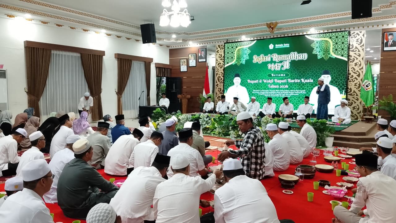 Barito Kuala – Suasana penuh kebersamaan dan kekhidmatan mewarnai kegiatan Buka Puasa Bersama dalam rangka Safari Ramadhan Baiman 1447 H yang digelar di Aula Selidah Pemda Kabupaten Barito Kuala, Jln. Pangeran Antasari No. 01, Kelurahan Marabahan Kota, Kecamatan Marabahan, pada Jumat (27/2/2026). Acara ini menjadi momentum penting dalam mempererat tali silaturahmi antara pemerintah daerah, jajaran Forkopimda, dan masyarakat.