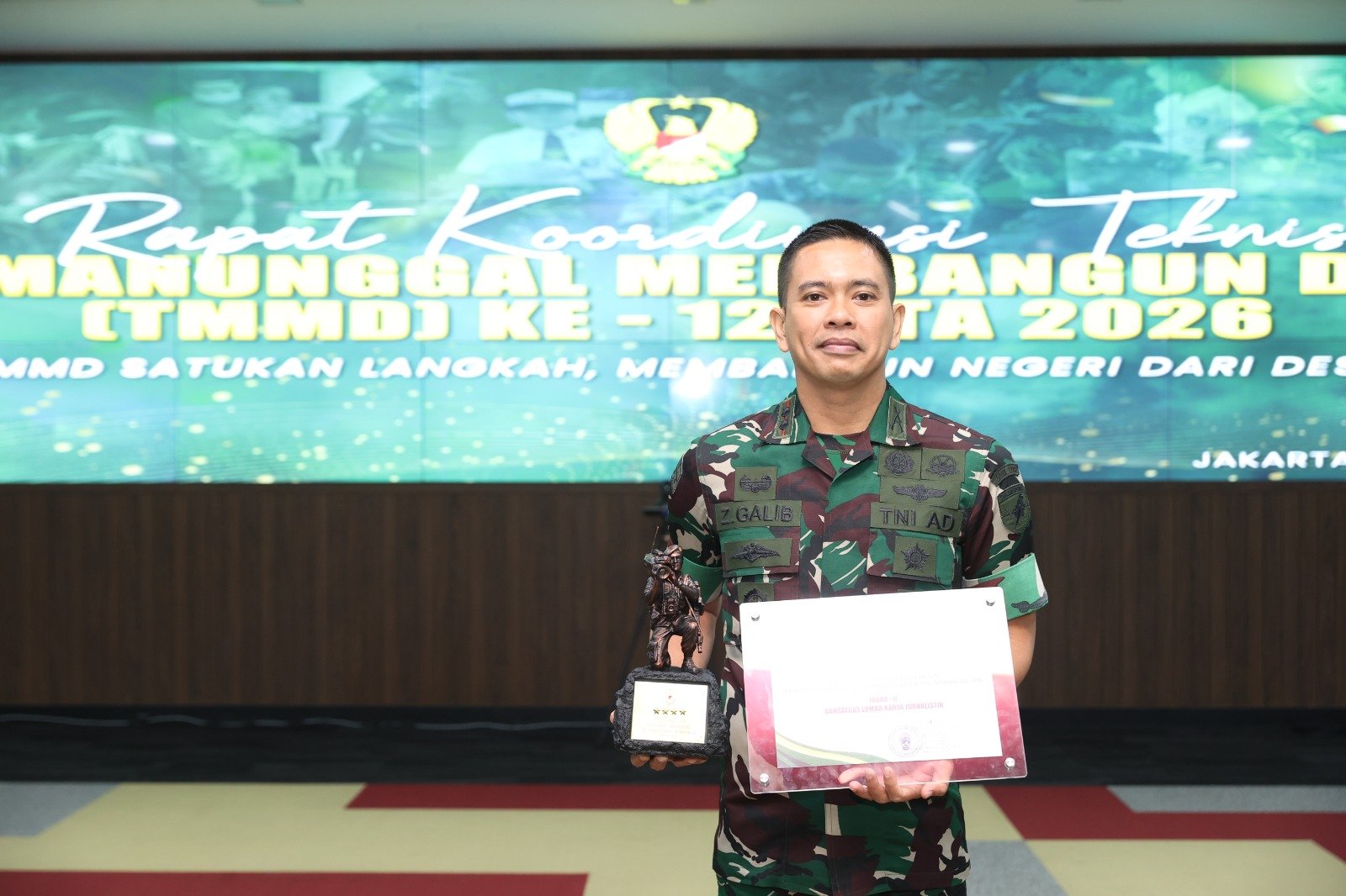 Penyerahan piagam penghargaan dan piala dilaksanakan secara resmi di Aula Mabesad, sebagai bentuk apresiasi dari pimpinan TNI AD kepada satuan kewilayahan yang dinilai berhasil dalam pelaksanaan TMMD sekaligus publikasi kegiatan secara optimal.