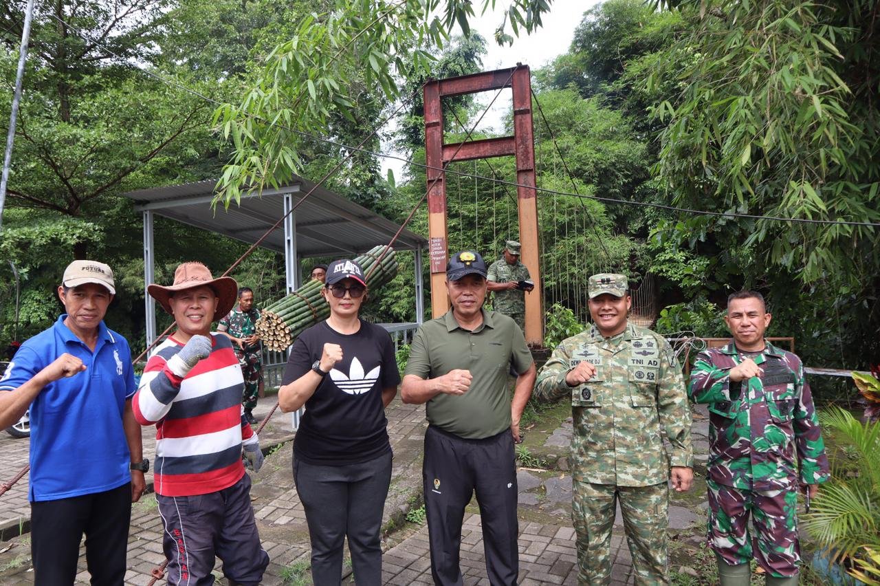 Danrem 131/Stg, Brigjen TNI Martin Susilo Martopo Turnip, S.H., M.H. bersama rombongan yang didampingi Dandim 1310/Btg, Letkol Inf Dewa Made DJ, meninjau lokasi jembatan yang menghubungkan Desa Sawangan dan Kel. Rap Rap, untuk memastikan secara langsung kondisi di lapangan, sekaligus melihat kesiapan lokasi dan manfaat pembangunan jembatan bagi masyarakat setempat.