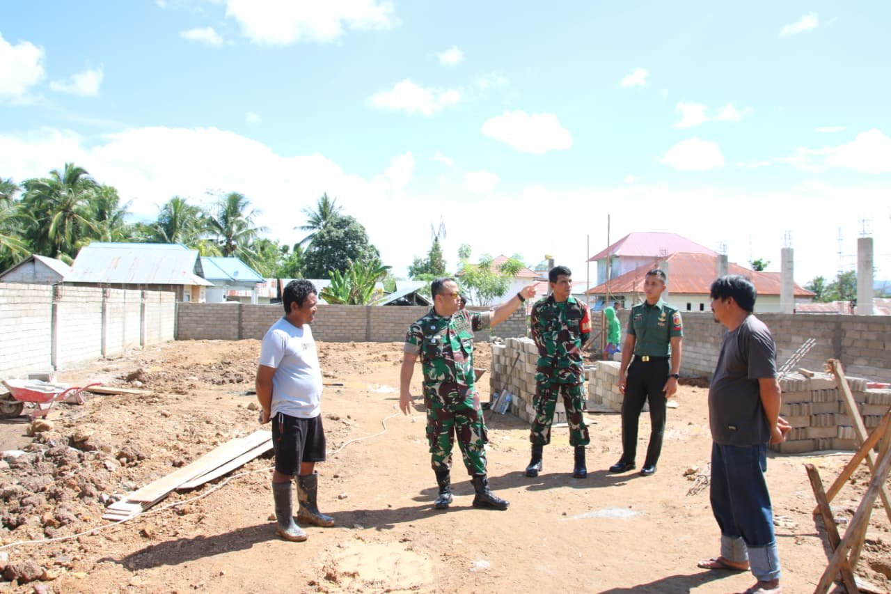 Dandim juga menekankan agar pekerjaan tidak terhenti hanya karena kendala material. “Kerjakan apa yang bisa menjadi prioritas untuk dikerjakan lebih cepat. Jika material bangunan belum ada, jangan menunggu. Kerjakan terlebih dahulu bagian yang bisa dikerjakan. Jika tembok sudah berdiri tetapi besi atap belum tersedia, kerjakan dulu saluran air,” ujarnya.