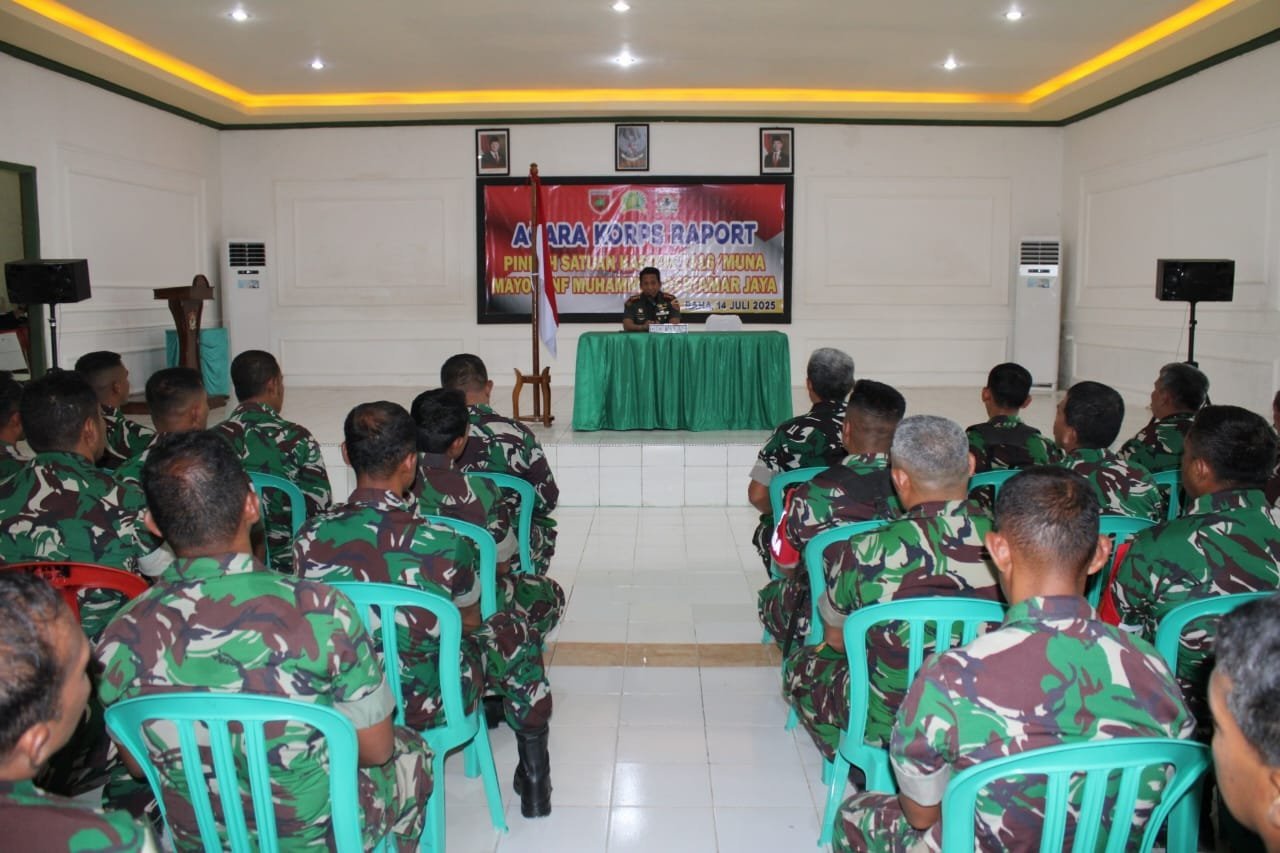 Muna–Komandan Kodim (Dandim) 1416/Muna Letkol Inf Salman Habibu memberikan jam komandan kepada seluruh prajurit, Senin (14/07/2025).