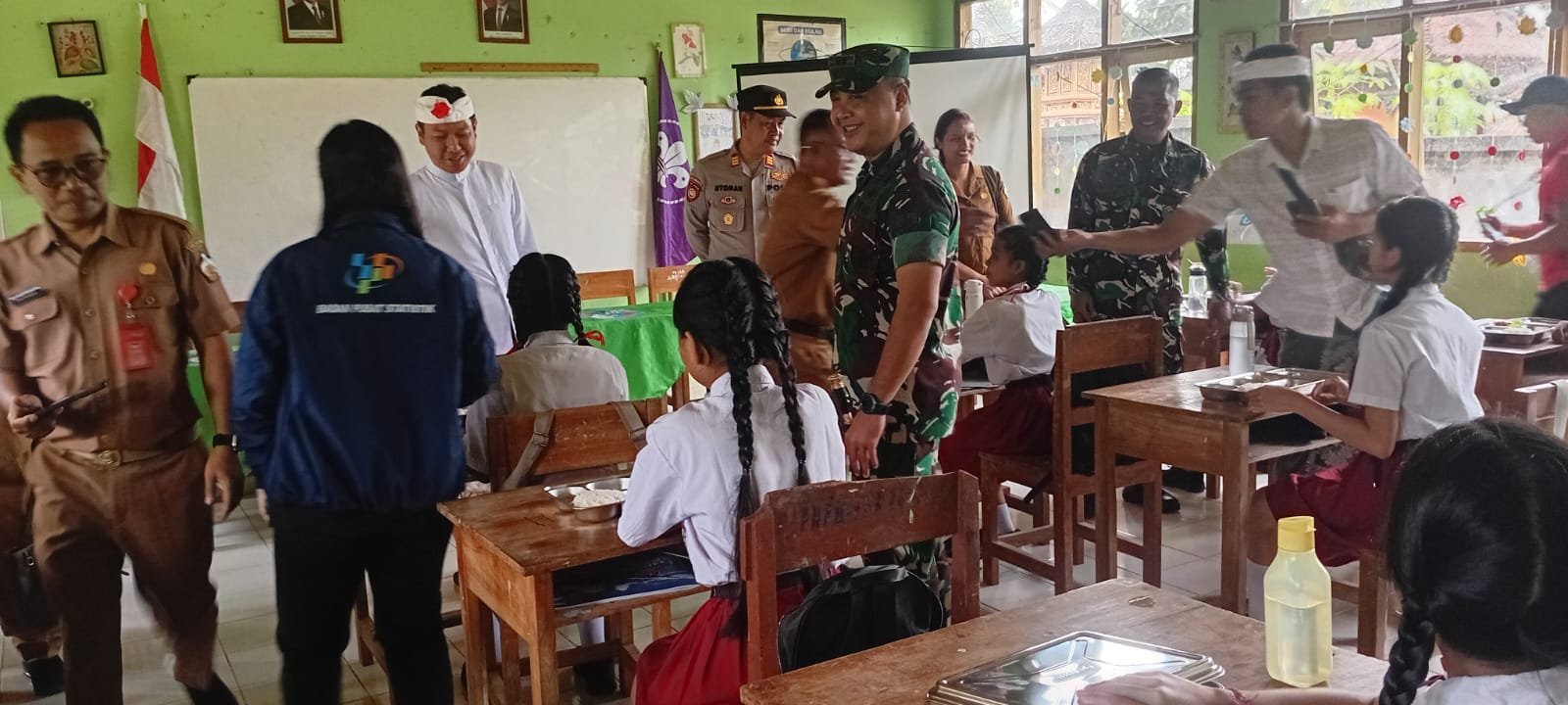 Dalam kesempatan itu, Dandim 1626/Bangli menyerahkan secara simbolis paket makan bergizi gratis kepada siswa-siswi SD N 2 Penglumbaran. Didampingi unsur Forkopimda Bangli dan Kepala Koordinator SPPG Penglumbaran, Dandim secara langsung memberikan paket makanan kepada anak-anak yang menyambut program tersebut dengan penuh semangat.