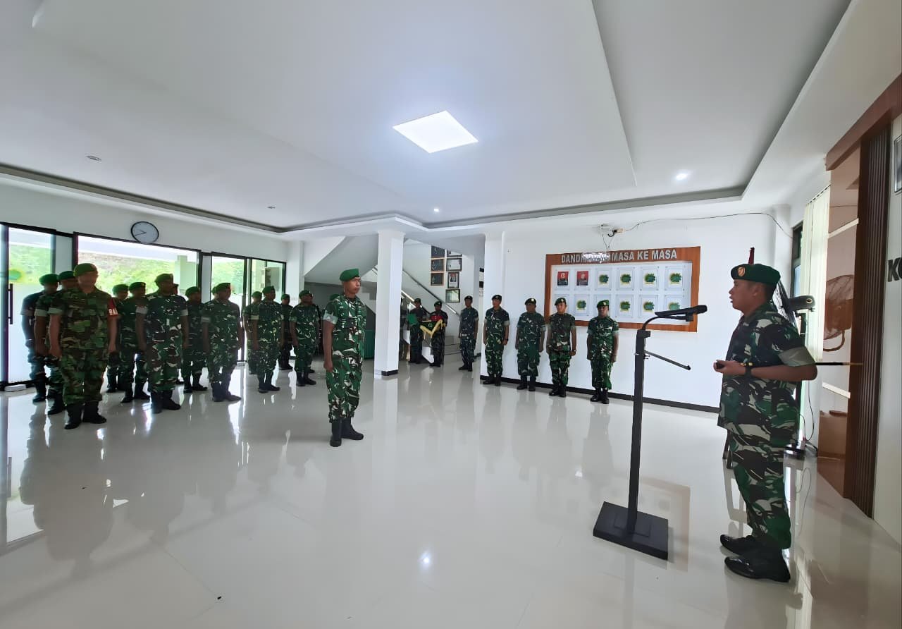 Rangkaian kegiatan diawali dengan laporan resmi, pembacaan pernyataan pelepasan, serta pemberian plakat penghargaan oleh Dandim kepada personel yang pindah satuan.